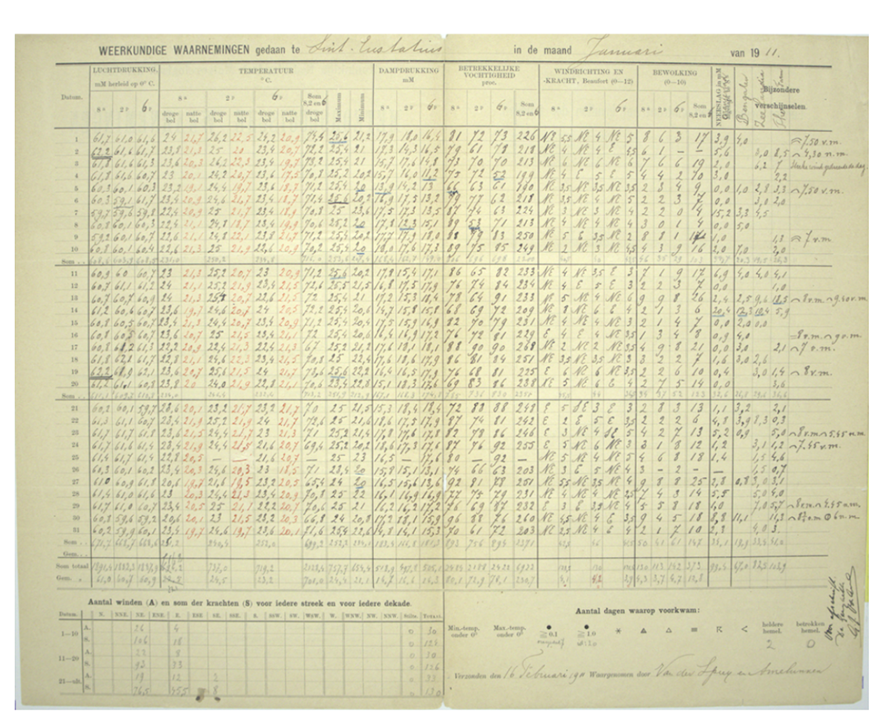 Figure 1. Meteorological observations from St Eustatius from January 1911